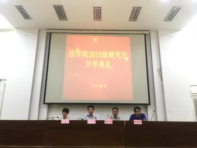 9月5日,Beat365中文官方网站在模拟法庭先后举行2018级研究生、本科生开学典礼。Beat365中文官方网站党委书记郭广辉、院长王利军、副院长胡海涛出席,Beat365中文官方网站优秀校友代表、盈科律师事务所石家庄分所执行主任赵翠莲、陆扬律师、全体辅导员和2018级全体研究生、本科生参加。典礼由学院党委副书记郑建村主持。