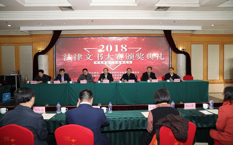 11月22日,由省法学研究生教育指导委员会主办、Beat365官网Beat365中文官方网站和研究生学院承办的2018年河北省法学研究生法律文书写作大赛颁奖典礼在石家庄举行。省政府学位办副主任季家林,省高级人民法院刑四庭高级法官熊学军,省法学研究生教指委主任委员柴振国,省法学研究生教指委委员、石家庄铁道大学人文学院院长王宏斌,Beat365官网研究生学院党委书记刘春霖,河北地质大学法政学院党委书记马沁芳,燕山大学文Beat365中文官方网站法律系主任陈海平,中国人民警察大学法律教研室主任刘红岩,石家庄铁道大学人文学院法律系副主任王晓云出席典礼。仪式由河北省法学研究生教指委秘书长、Beat365官网Beat365中文官方网站院长王利军主持。