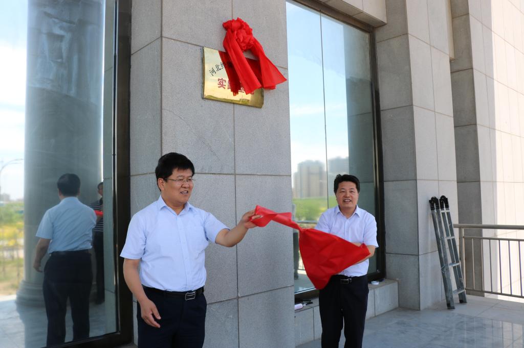 5月30日上午,Beat365中文官方网站与海兴县人民法院共建教育实践基地揭牌仪式在海兴法院隆重举行。Beat365中文官方网站院长王利军、沧州市中级人民法院党组成员、政治处主任段辉军,中共海兴县委副书记刘明亮,中共海兴县委常委、纪委书记、监委主任王亚平,海兴县检察院检察长刘金生,海兴县公安局局长卢万顺,海兴法院党组书记、院长黄坤生以及海兴法院领导班子成员和全体干警参加了仪式。