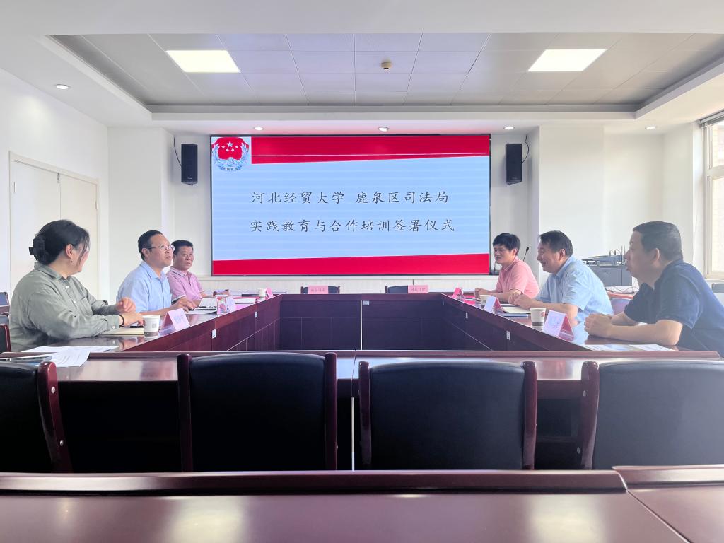 6月1日下午,Beat365中文官方网站副院长胡海涛、刘静仑教授等一行赴石家庄市鹿泉区司法局访问交流。鹿泉区司法局党组书记、局长高明芳、党组成员桂晓哲、法律援助中心主任甄晓宁参加座谈。