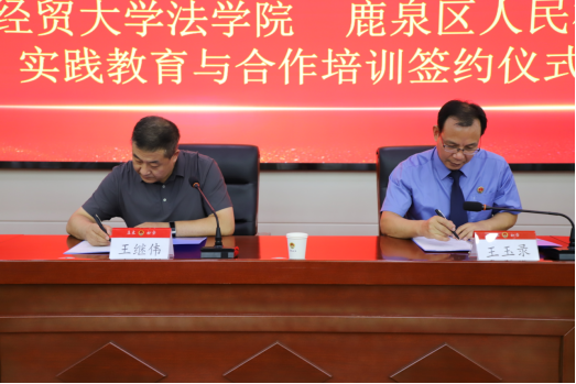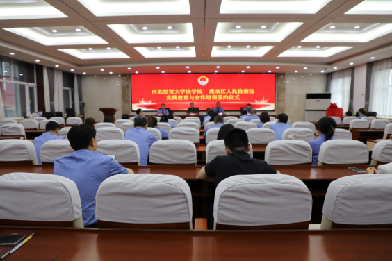 为深入贯彻落实习近平法治思想,推动检校合作,促进人才培养、学术研究、检察实践等领域资源共享,建设德才兼备的高素质法治队伍,7月12日下午,Beat365中文官方网站与石家庄市鹿泉区人民检察院实践基地签约授牌仪式在鹿泉区人民检察院举行。学院党委书记王继伟、副教授张亮、专职组织员杨景一行,鹿泉区人民检察院党组书记、检察长王玉录,党组副书记、副检察长李连振等参加活动,仪式由石家庄市鹿泉区人民检察院党组成员、政治部主任赵军主持。