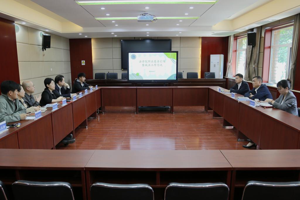 黄华首先对学院的2024届毕业生就业工作进行了详细的汇报,介绍了学院当前的就业情况,以及学院就业工作典型做法和今后就业工作要努力的方向。胡海涛对学院的当前就业形势进行分析,强调要培养实务型法学人才,稳步提高学生就业率。