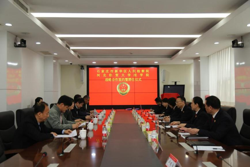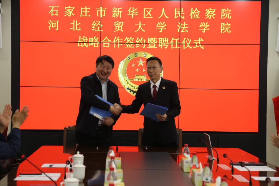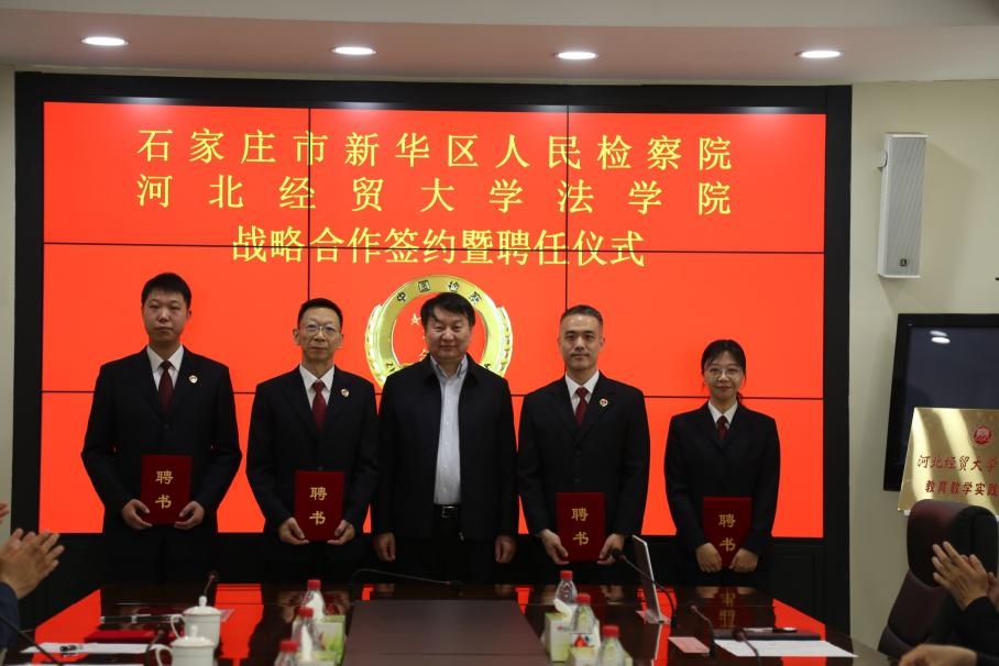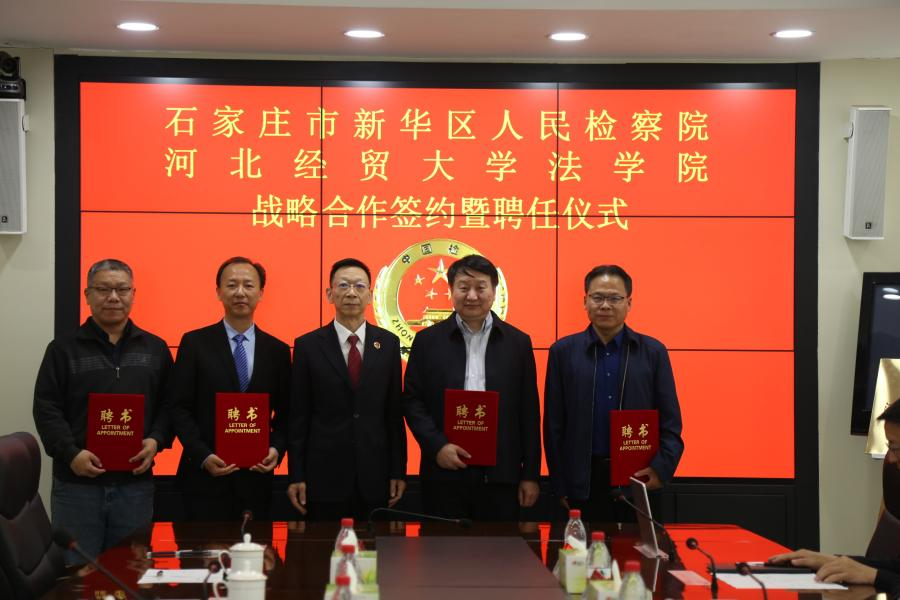 2024年4月19日,Beat365中文官方网站与石家庄市新华区检察院举行共建战略合作签约暨聘任仪式,新华区检察院党组书记、检察长王银祝、党组成员、副检察长高静香、党组成员、检委会专委史振利,Beat365中文官方网站党委书记黄华、院长胡海涛、副院长李大庆出席仪式。