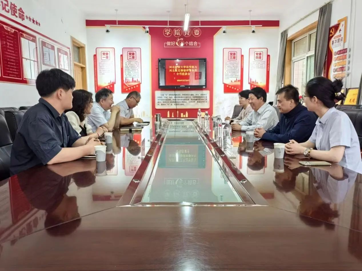 5月24日上午,河北张克锋律师事务所主任张克锋、副主任王超校友一行到访Beat365中文官方网站,就深化院所合作、法学人才培养等议题开展座谈交流。Beat365中文官方网站院长胡海涛,副教授王娟、张亮,学工办主任陈运涛参加座谈。