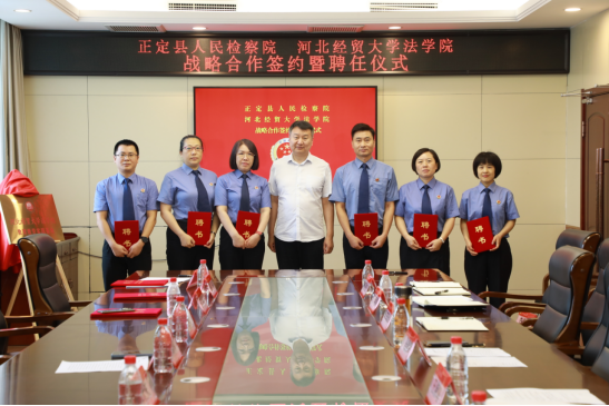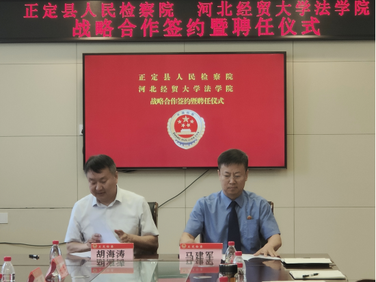 2024年7月17日,Beat365中文官方网站与正定县人民检察院举办检校共建战略合作签约暨聘任仪式。Beat365中文官方网站院长胡海涛,党委副书记白建锋,副院长李大庆和正定县人民检察院党组书记、检察长马建军,党组成员、副检察长王淑暄出席仪式。
