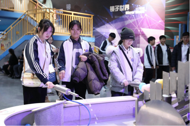 在班级学生代表的带领下,同学们依次参观学习了力学展区、地震展区、电学展区和虚拟现实体验区四个主题展区,活动现场组织了实景模拟、模型演示、趣味问答等多种互动形式;分散自由活动中,同学们体验了各种科技设备和互动模型,切身感受科学原理