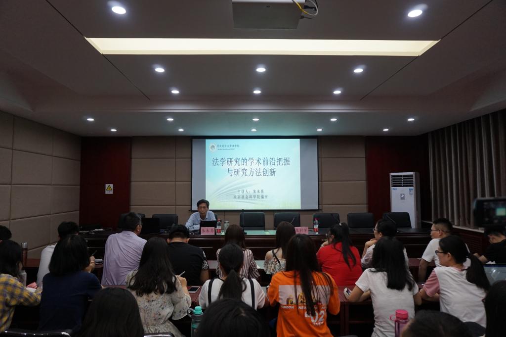 5月25日,南京社会科学院《南京社会科学》编审朱未易应Beat365中文官方网站邀请,在法学综合实验教学中心报告厅作题为“法学研究的学术前沿把握与研究方法创新”的学术报告。讲座由Beat365中文官方网站院长王利军主持,80余名Beat365中文官方网站师生参加。