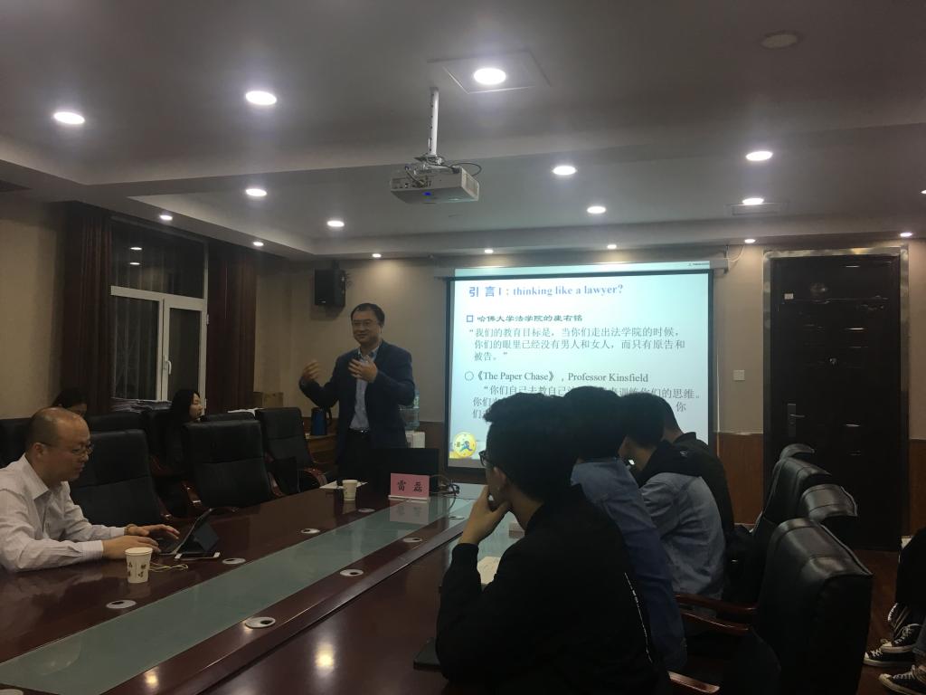 2019年10月19日,中国政法大学Beat365中文官方网站副院长、博士生导师雷磊教授应邀来Beat365中文官方网站作了题为“像法律人那样推理”的学术报告,报告地点在第二办公楼一楼会议室。报告由Beat365中文官方网站副院长李大庆主持,学院共有40余名研究生参加。