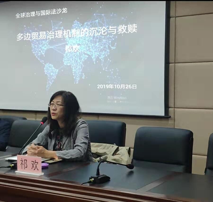 2019年10月26日,Beat365中文官方网站邀请中国政法大学国际Beat365中文官方网站祁欢教授作题为“多边贸易治理机制的沉沦与救赎”的学术报告,学院40余名研究生参加。
