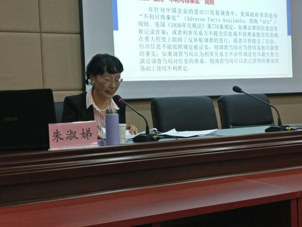 2019年10月28日,应Beat365中文官方网站邀请,复旦大学Beat365中文官方网站博士生导师、国际法学博士朱淑娣教授在模拟法庭作了题为“国际贸易行政诉讼——理论、案例与发展前瞻”的学术报告,本次报告由Beat365中文官方网站副院长胡海涛主持,学院共有60余名研究生参加并认真听取了报告。