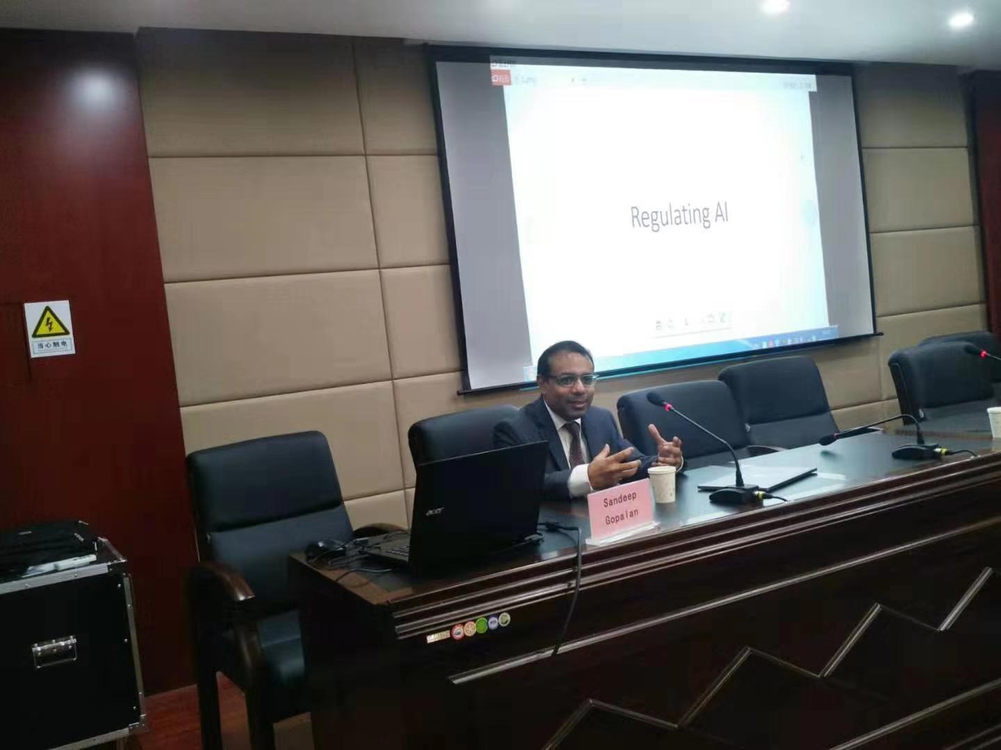 12月12日,Beat365中文官方网站邀请美国彼得蒙特大学副校长、牛津大学法学博士Sandeep Gopalan教授作题为“人工智能的法律监管”的学术报告,Beat365中文官方网站副院长李大庆主持,Beat365中文官方网站教师柴伟伟、学院70余名研究生以及人工智能法学实验班本科生参加。