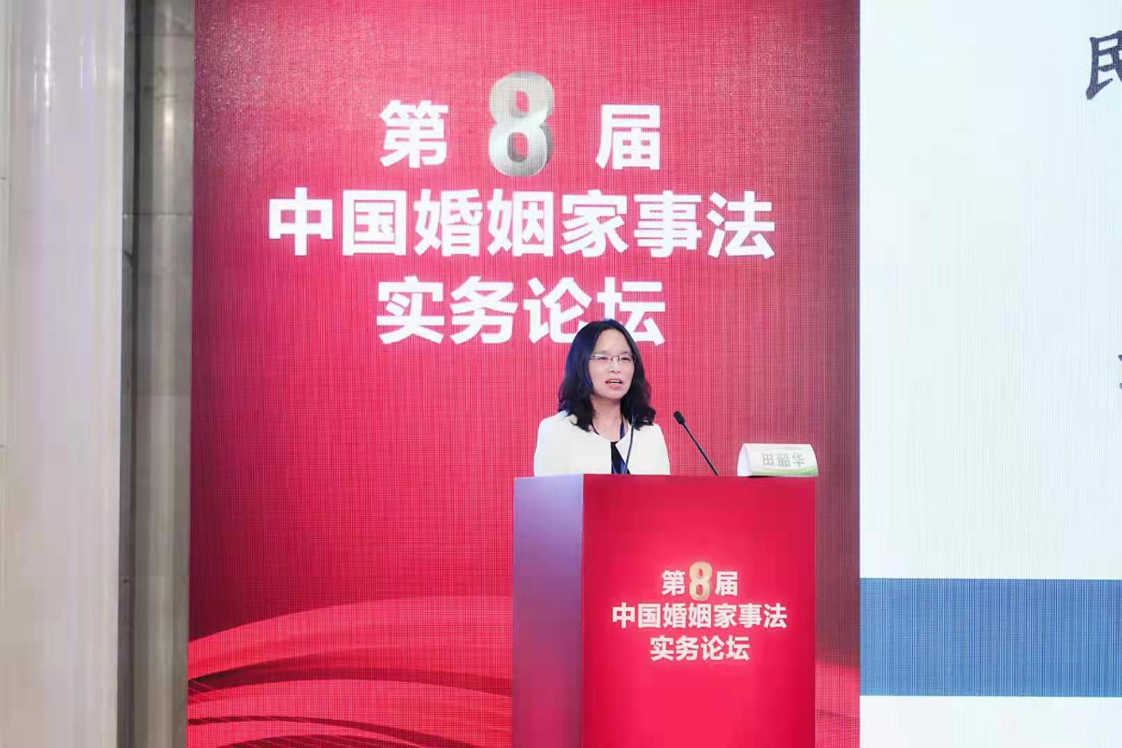 2021年4月17日,由中国法学会婚姻家庭法学研究会、中国人民大学Beat365中文官方网站主办的第八届中国婚姻家事法论坛在北京召开。本次论坛的主题是“民法典婚姻家庭编、继承编中的重点、难点问题的法律适用、家事审判实务问题。Beat365官网田韶华教授应邀参加会议并就《民法典离婚损害赔偿制度法律适用的疑难问题》作了主题发言。