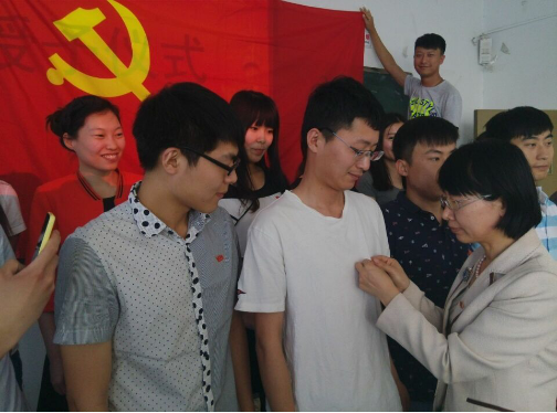王娟传达了学校和学院关于“两学一做”学习教育的要求,布置了Beat365中文官方网站对于党的建设规定以及针对毕业生党员所开展的各项活动。“戴党员徽章 跟党走”仪式中,郑建村、王娟和仇志伟三位老师为毕业生党员佩戴党员徽章,全体党员面向党旗,重温入党誓词。毕业生党员代表进行发言。