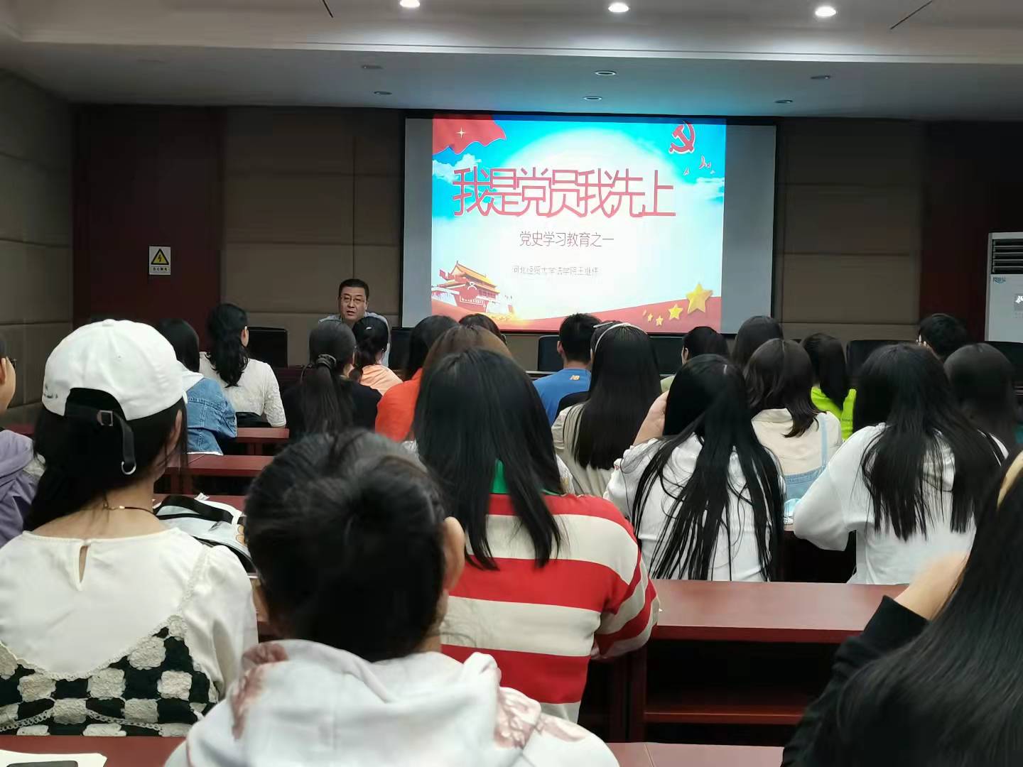 9月25日,Beat365中文官方网站“我是党员我先上”党史学习教育理论学习会议在模拟法庭三楼报告厅召开,此次会议由班级辅导员助理史美纳主持,Beat365中文官方网站党委书记王继伟出席此次会议。