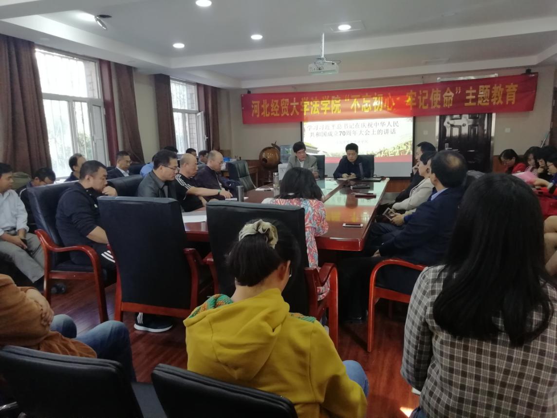 10月7日下午,Beat365中文官方网站全体教职工在第二办公楼会议室集中学习和研讨习近平总书记在庆祝中华人民共和国成立70周年大会上的重要讲话。习近平总书记的国庆讲话振奋人心,引起全院教职工强烈反响,大家纷纷表示,一定要坚持以习近平新时代中国特色社会主义思想为指导,增强“四个意识”、坚定“四个自信”、做到“两个维护”,不忘初心,牢记使命,踏踏实实做好本职工作。