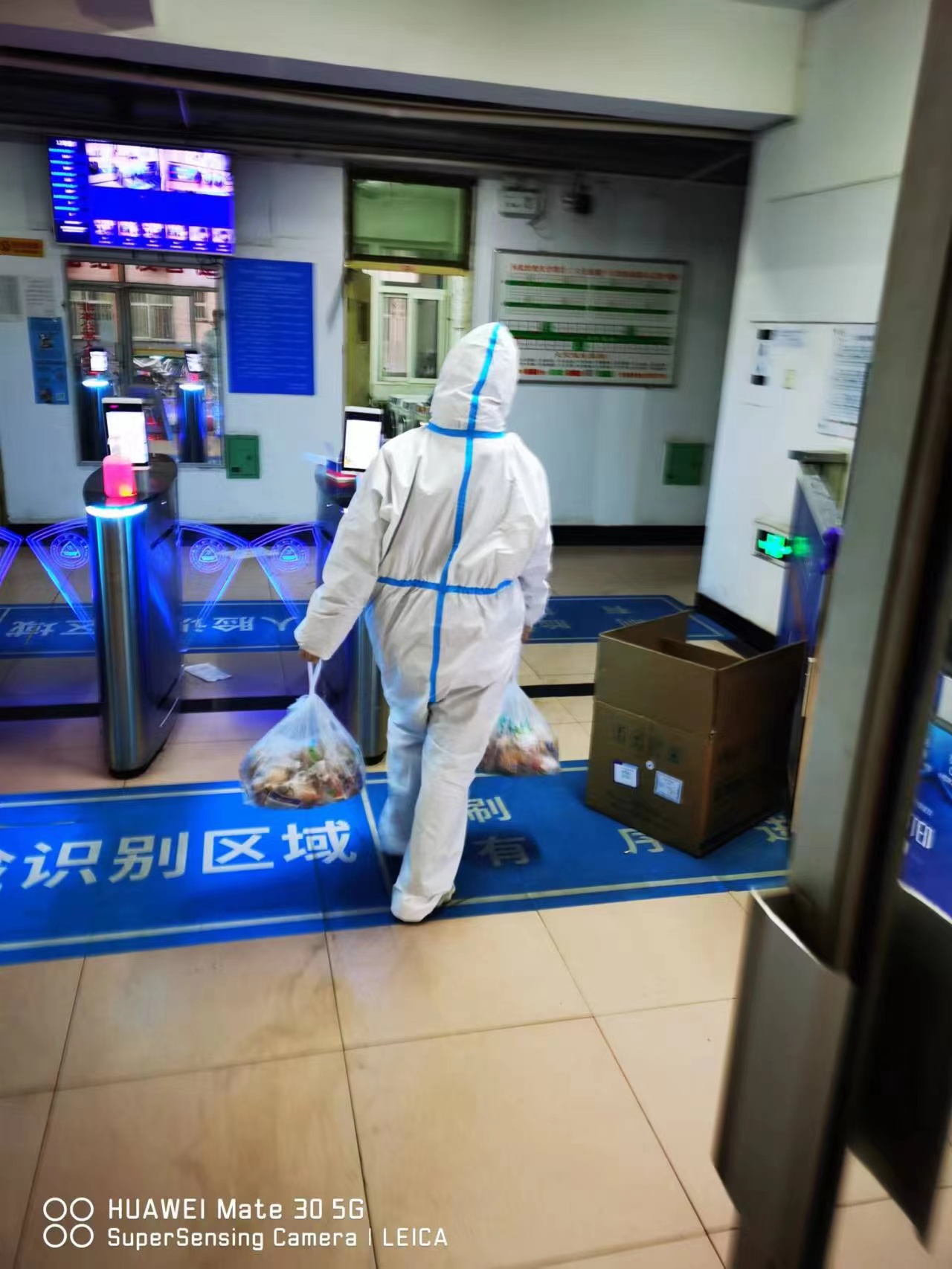 齐向晖正在搬运生活物资