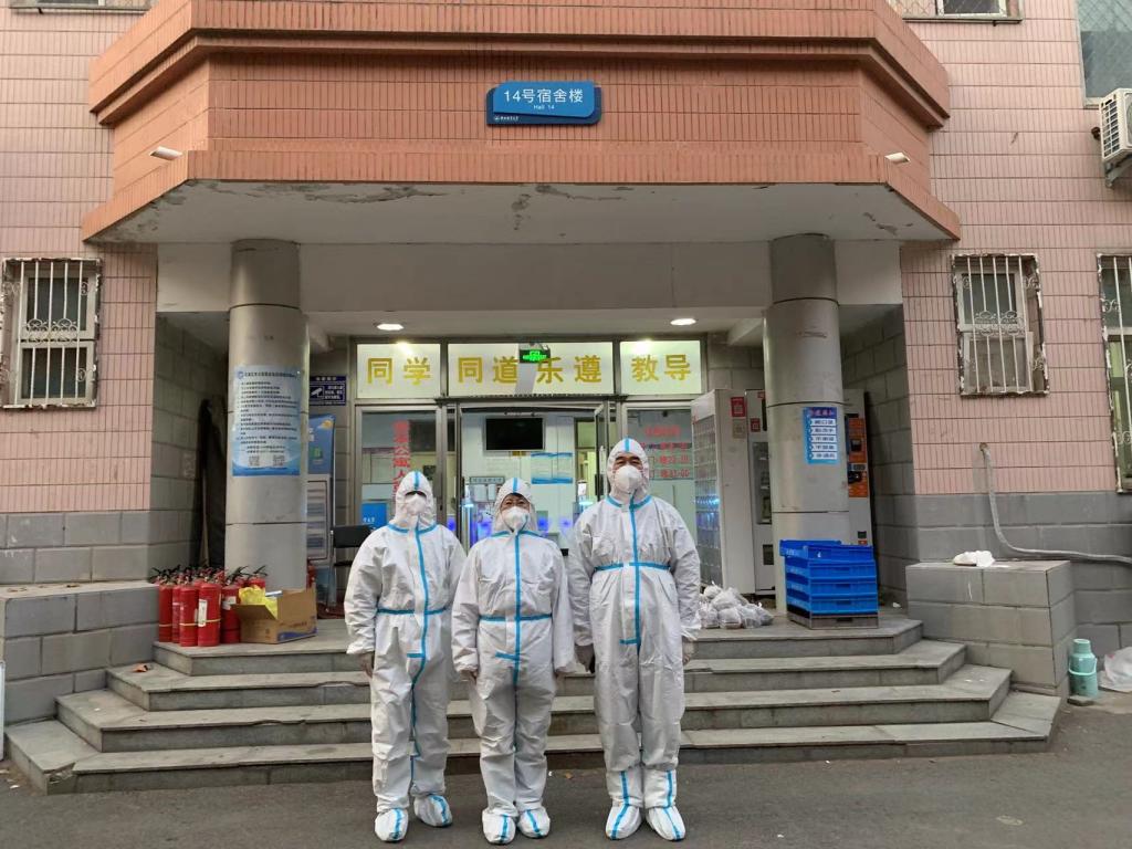 师者亦是仁者,疫情防控工作突然来临之时,Beat365中文官方网站全体教职工第一时间走向“战场”,义无反顾的化身守护学生的“大白”。他们是“外卖员”,学院领导和老师们上阵,为学生们配送一日三餐、生活用品,全力保障大家的基本生活;他们是“清洁工”,从五楼到一楼,不论是年长的老教授还是瘦小的女老师,都拎起大大的垃圾袋,用心维护干净清洁的宿舍卫生环境;他们是“守护神”,每层楼都有老师24小时值守宿舍,更好随时帮助学生解决突发状况。