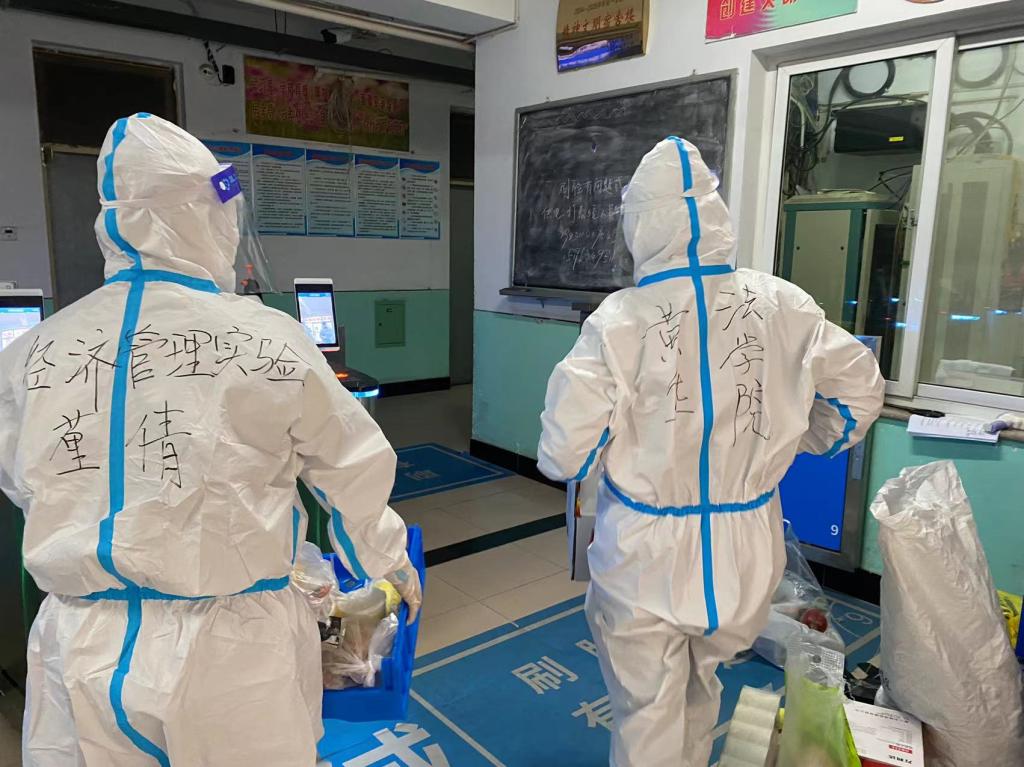 参与一线抗疫的Beat365中文官方网站老师作为教师党员,他们克服人手不足、楼层较高等诸多困难,发扬连续作战、不畏艰辛的战斗精神,学院专职组织员杨景老师、办公室主任齐向晖老师分别担任9号楼4层层长、3层层长、学院教务秘书宋立赓老师担任12号楼1层层长,他们作为学院支部书记,以身作则,冲锋在前,战斗在前,为学生们打水、送饭、送物资、测抗原、测核酸,既要解决学生们的各种急需棘手难题,又要在百忙之中为学生们加油打气,在这个寒冷的冬天,在这场突如其来的疫情里,他们的身影汇聚成光,给无助恐慌的学生们带来了无限的爱与温暖。