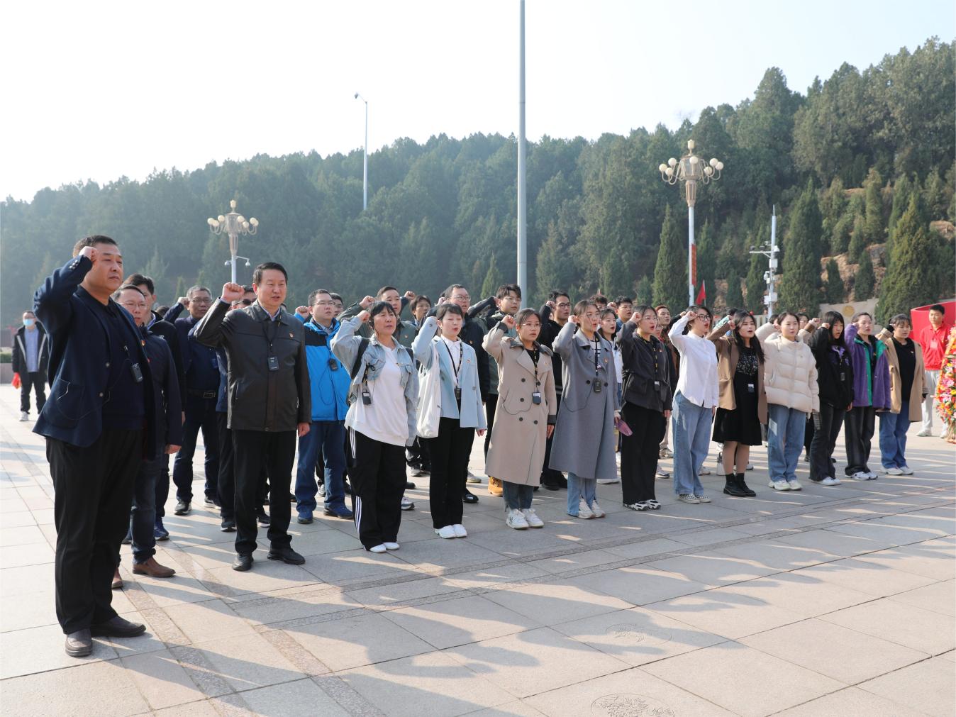 在西柏坡纪念馆广场前,王继伟带领新发展党员与师生支部书记面向党旗庄严宣誓。天清气朗,誓词响亮,这既是学院运用好红色革命资源、传承好革命精神,持续做好学史力行的鲜明体现,也是党员教师、学生党员走好“党之初”,重走赶考路,接受革命传统教育的一次精神洗礼。