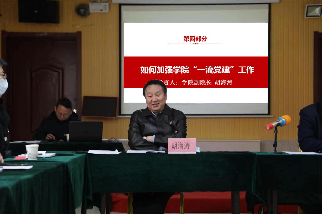 胡海涛援引革命战争时期党如何加强党建,确保党组织战斗力与生命力在艰苦环境中不衰竭的生动历史经验,提出百年后的今天加强学院一流党建工作的方式方法;会议最后,王继伟作总结发言,一要持续强化学习能力,党委班子成员及师生支部书记要将宣传贯彻二十大精神作为今年首要政治任务,提高党性修养。二要持续提高担当意识,希望各支部要将计划落到实际行动上来,把好的想法落地,把好的经验发扬,不断增强基层党组织战斗堡垒作用;三要持续增强斗争本领,他强调西柏坡之行要有所收获和感悟,让思想进步外化于行,反哺各自工作岗位,通过把学习成果转为工作实绩,带动各项工作“争一流、争第一、争唯一”,实现党建引领业务发展,业务促进党建提高,真正做到党建与业务深度融合。
