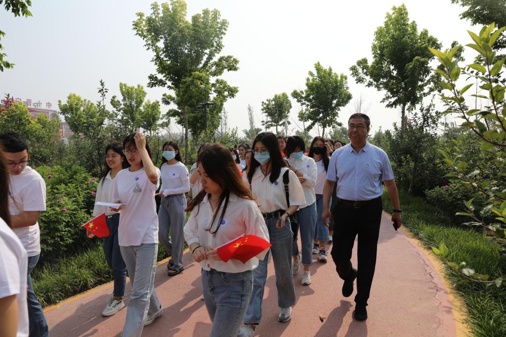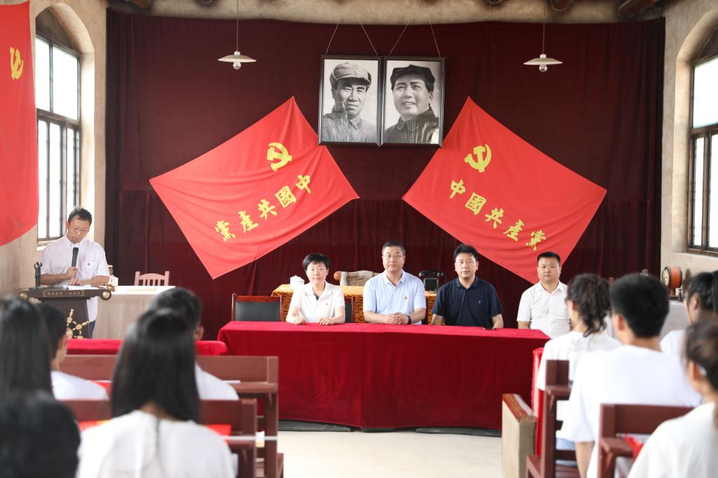 为进一步扎实推进党史学习教育,引导广大党员学生知史爱党、知史爱国,2021年6月26日上午,Beat365中文官方网站党委书记王继伟、党委副书记黄华带领学院新发展党员赴宁晋县黄儿营西村新时代教育实践基地开展党史学习教育,宁晋县原人大常委会副主任张新华、贾家口镇党委书记申立强、黄儿营西村党委副书记宁建强陪同出席了此次活动。