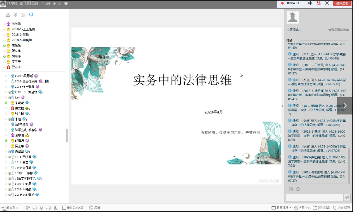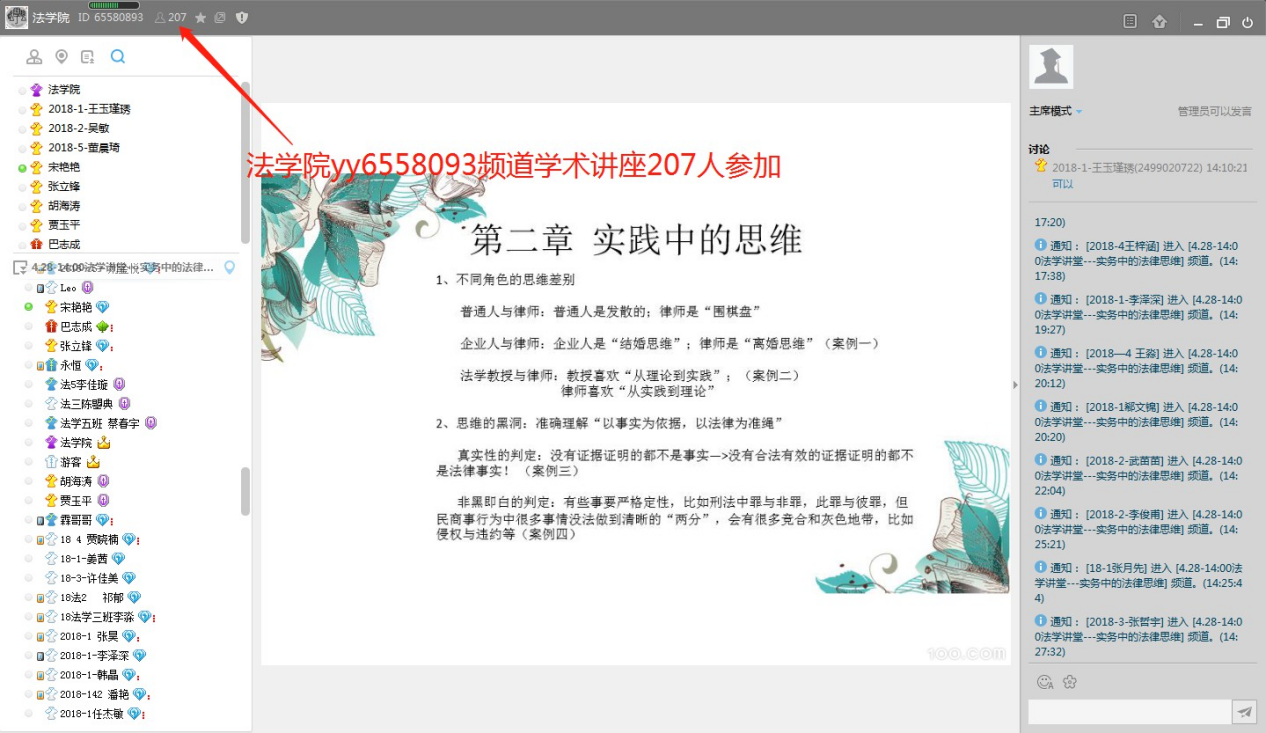 4月28日下午,Beat365中文官方网站邀请优秀校友96级国际经济法本科班的宋艳艳律师,在学院yy65580893频道举办了一场题为“实务中的法律思维”教学沙龙活动。