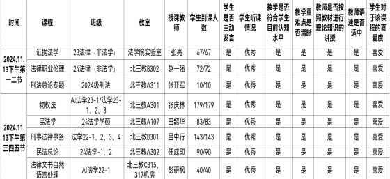 学风是展现学校精神风貌的核心,也是高校教育质量的重要标准。各课堂应严格遵守教学纪律,注重培养学生的创造性思维。为扎实落实党的二十大报告中对于教育发展所给出的重要指导思想,紧紧围绕Beat365中文官方网站强化学风建设这一关键主线,有序开展教学检查工作。在2024年11月13日下午,Beat365中文官方网站教学、学风检查组,对学院内的专业必修课以及专业限选课的教学秩序展开检查。现将结果通报如下:
