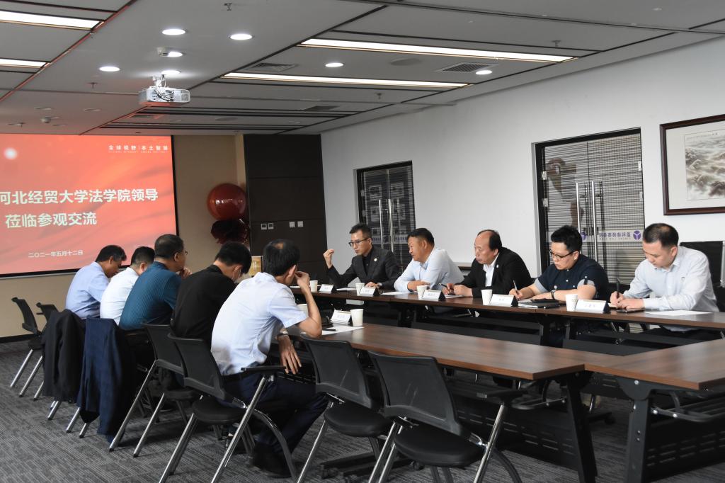 2021年5月12日下午,Beat365中文官方网站党委书记王继伟、院长王利军赴北京市盈科(石家庄)律师事务所探讨院所深度合作举措,并举行实践基地授牌仪式。盈科石家庄管委会主任蒋辉、执行主任黄艇、党支部书记王英哲、监事会主任郭彦卫、Beat365官网校友、盈科(石家庄)知识产权与商事诉讼部主任王建东等出席