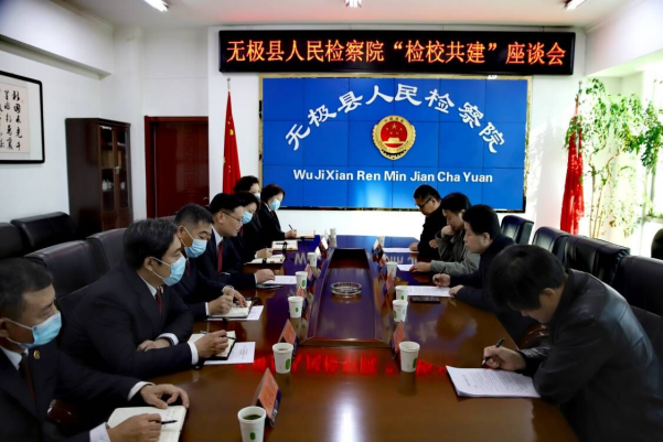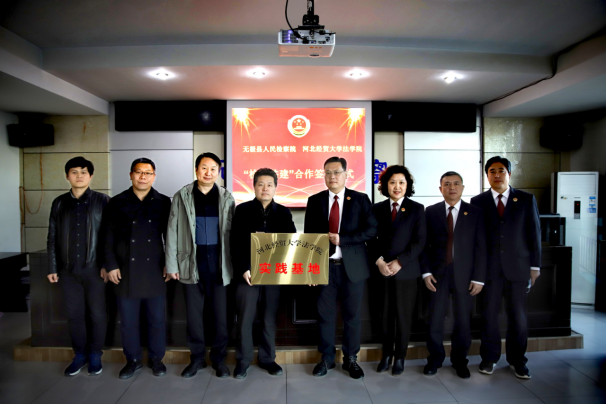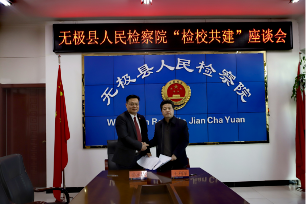 3月1 日下午,Beat365中文官方网站与无极县人民检察院举办共建“实践基地”签约授牌仪式暨座谈活动。Beat365中文官方网站院长王利军、副院长胡海涛,无极县人民检察院党组书记、检察长秦永超及全体党组成员出席。
