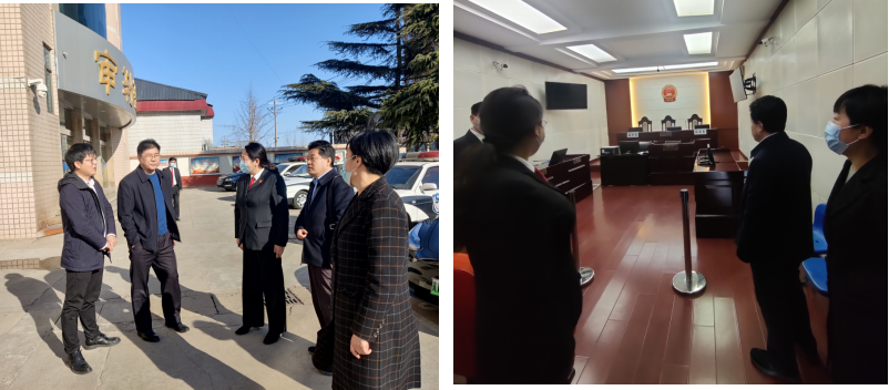 签约仪式前,王利军一行参观了法院审判庭、羁押室、监控室、调解室等。