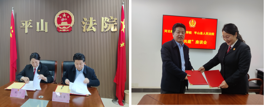 3月2日下午,Beat365官网与平山县人民法院共建教学实践基地签约仪式在平山县人民法院举行。Beat365中文官方网站院长王利军,党委副书记黄华,专家学者李献中、孙晓丹、林群丰,团委书记解思语,平山县人民法院党组书记、院长刘平,党组成员、副院长孙辉,党组成员蒋海金,党组成员、执行局局长刘明芳、审判委员会专职委员赵树勇出席。