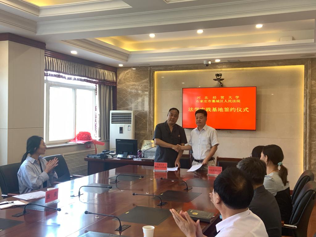 为进一步深化校地合作,7月13日,石家庄市藁城区人民法院与Beat365中文官方网站共建教学科研实践基地签约揭牌仪式在藁城区人民法院举行。Beat365中文官方网站党委书记王继伟、院长王利军、副教授王韬、张亮和藁城区人民法院党组书记、院长武月江、副院长常晓丰等班子成员一同出席签约仪式,仪式由武月江主持。