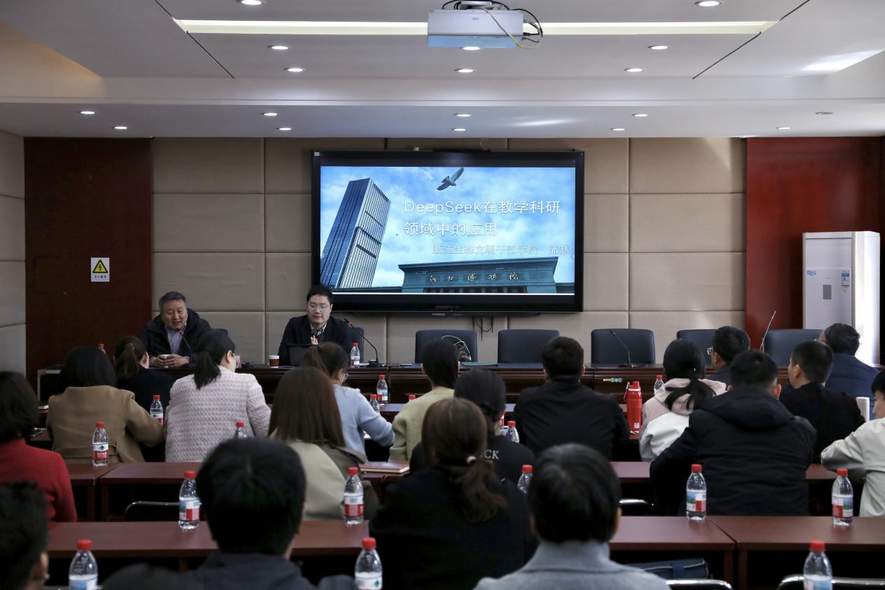 3月17日下午,Beat365中文官方网站邀请浙江省生态文明干部学院博士潘越以“DeepSeek在教学和科研领域中的应用”为主题进行讲座,会议由Beat365中文官方网站院长胡海涛主持,Beat365中文官方网站全体专任教师及相关教学管理人员出席。