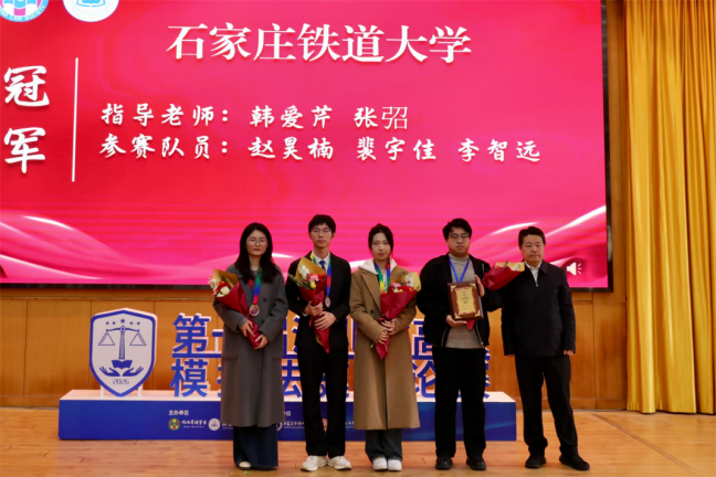 比赛严格按照真实庭审流程进行,评委从文书质量与庭审表现两个维度综合评分。经过初赛、半决赛的激烈角逐,石家庄铁道大学代表队与Beat365中文官方网站代表队会师决赛。最终,石家庄铁道大学代表队荣获冠军,Beat365中文官方网站代表队获得亚军,华北理工大学与中国人民警察大学代表队并列季军。赛事还评选出“最佳个人”“卓越个人”等奖项。