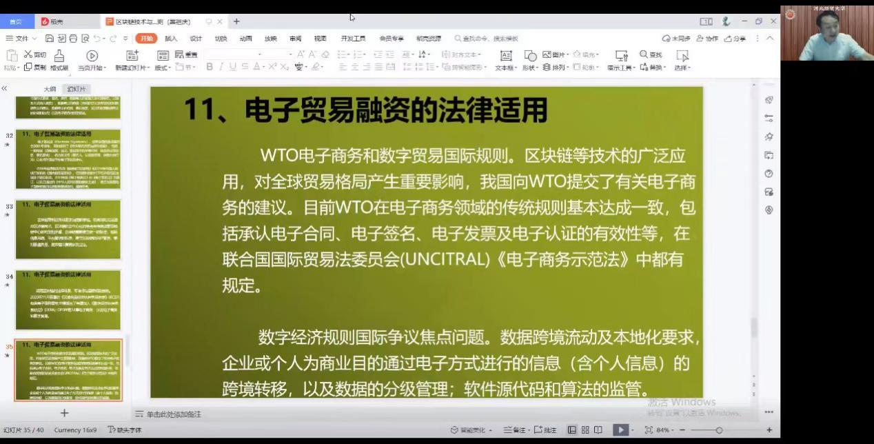 5月17日晚,天津师范大学自由经济区研究所特聘研究员、辽宁科技大学经济与法律客座教授黑祖庆应邀为Beat365中文官方网站师生作题为“区块链技术原理与数字贸易规则”的线上专题讲座。Beat365中文官方网站副院长胡海涛主持,100余名师生参加。