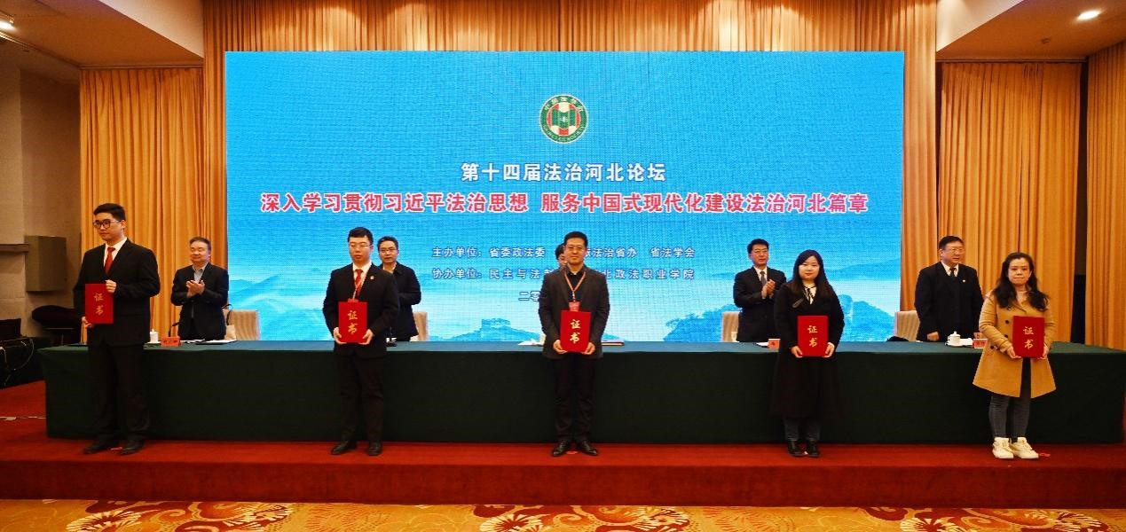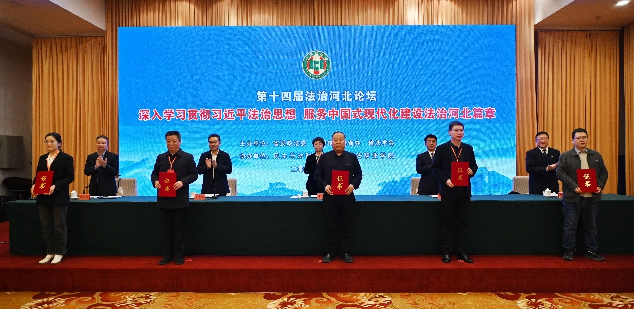 2023年11月25日,第十四届法治河北论坛在石家庄举行。会议由中共河北省委政法委员会、中共河北省委全面依法治省委员会办公室、河北省法学会共同举办,民主与法制社、河北政法职业学院协办。Beat365中文官方网站教师崔盈、林群丰、于晶晶、王康参加了本次会议。