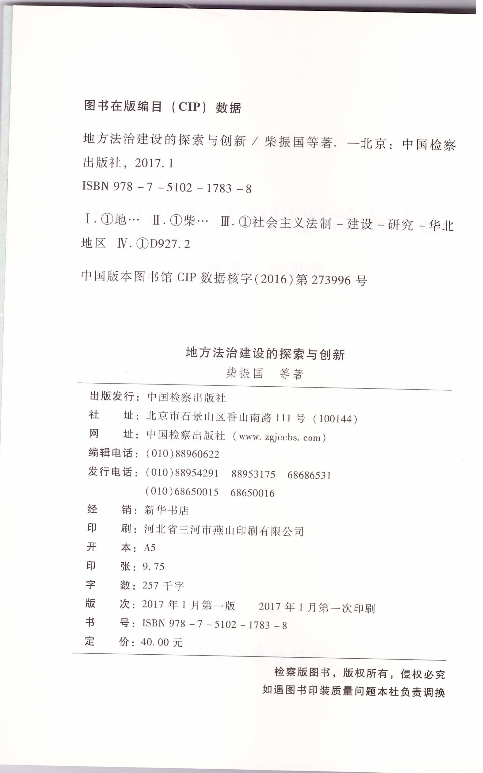 柴振国《地方法治建设的探索与创新》