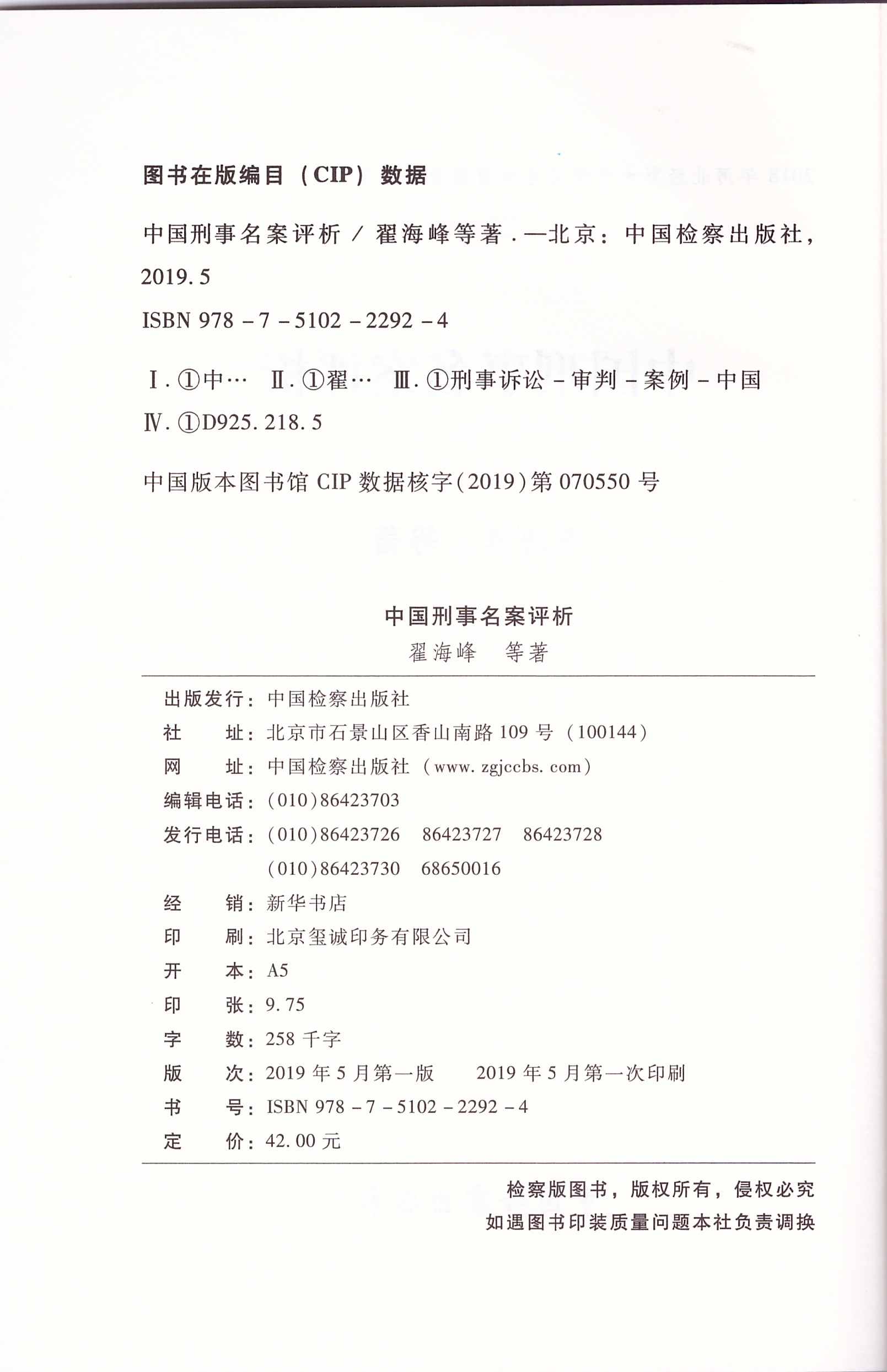 翟海峰《中国刑事名案评析》