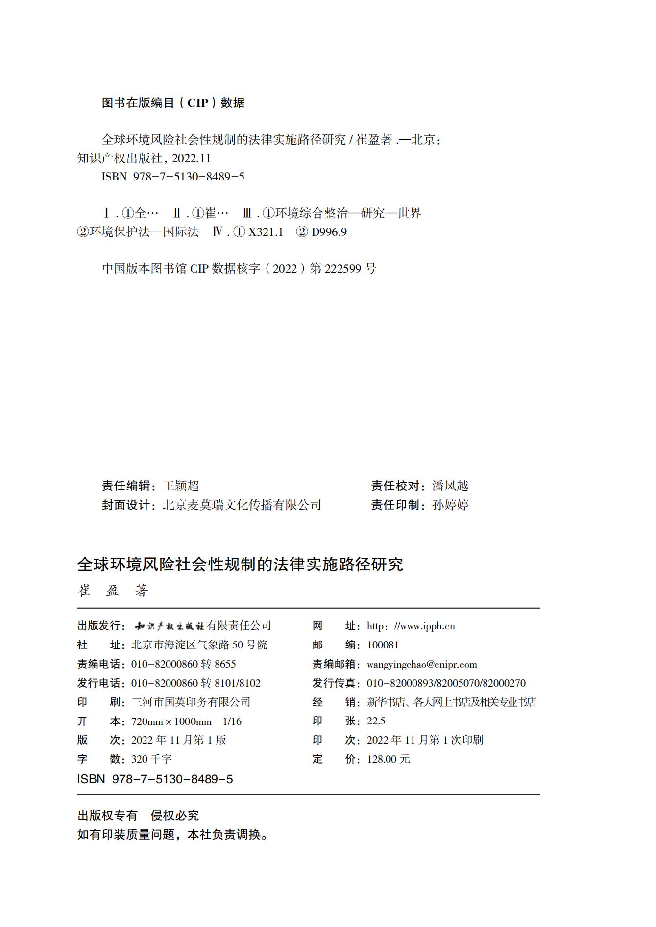 崔盈《全球环境风险社会性规制的法律实施路径研究》