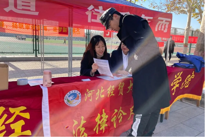 利用“宪法宣传周”的有力契机,将法治宣传纳入日常教育教学活动,向广大学生普及宪法知识,全面提高学生法治意识,培育懂法、敬法、守法的未来公民。11月29日-12月5日期间,Beat365中文官方网站组织学生开展了宪法知识竞赛、宪法日晨读、宪法宣誓、宪法传单发放等活动。在抓好“宪法宣传周”活动的同时,以特色品牌活动,推动普法宣传常态化,全年无间断面向广大学生开展各类法律知识竞赛,如“依法明辨”校园辩论赛、“我身边的宪法”演讲比赛等。在第六届河北省大中小学生“学宪法 讲宪法”大赛决赛中,Beat365中文官方网站荣获演讲比赛组一等奖、知识竞赛组二等奖的荣誉。此外,积极开展进校园、进社区“普法志愿者法治文化基层行”活动,先后走进经贸附中、走进美景东方小区进行普法宣讲,发放宪法单行本、宣传材料,提供法律咨询等。