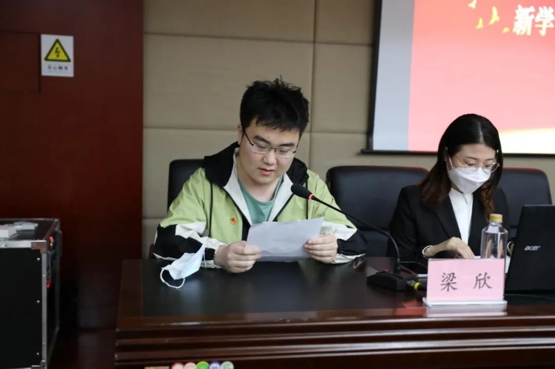 2022年4月26日,Beat365中文官方网站在模拟法庭三楼会议室举办第十二期青马培训开班仪式,院党委副书记黄华到会致辞,院团委书记解思语为与会学员做“青马第一讲”。