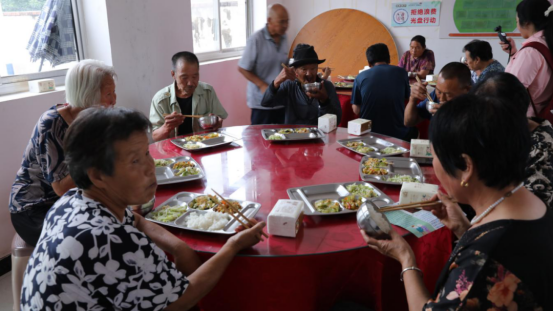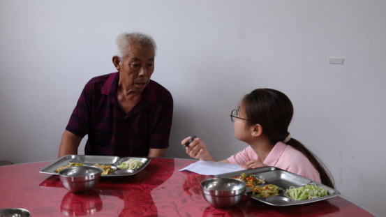 随后,小分队一行人前往“爸妈食堂”进行调研。饭桌上,大家都十分热情地欢迎志愿者的到来,成员们也采用“唠嗑式”的调研方式和大爷大妈们说说家长里短,谈谈问题苦恼。大家其乐融融,用最朴实的方式倾听基层民众的声音。“爸妈食堂”是一项完善养老服务体系的有力举措,不仅切实改善了孤寡老人的生活状况,还为其他探寻保障农村老年群体合法权益途径的行动,提供了可借鉴的范例 。