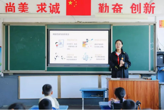 在凤山学校未成年人保护普法宣讲中,志愿者们通过生动有趣的PPT、动画视频和互动问答环节,以通俗易懂的语言,结合孩子们熟悉的生活场景,向孩子们讲解校园安全、网络安全、防欺凌等知识,问答环节学生们积极参与,现场气氛十分热烈,在轻松氛围中增强了自我保护意识和能力。