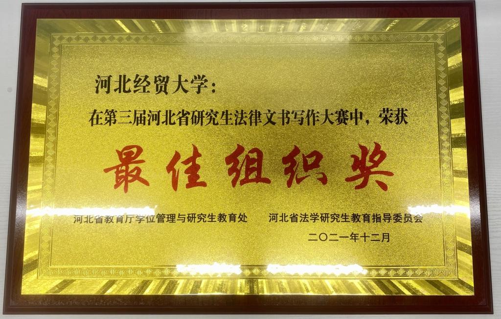 12月5日,“第三届河北省研究生法律文书写作大赛”颁奖大会通过腾讯会议线上举行。Beat365官网2021级宪法与行政法学专业研究生安朝阳等同学获得一等奖1项、二等奖2项、三等奖3项、优秀奖6项,丁渠教授、王利军教授、张亚军教授荣获优秀指导教师,Beat365中文官方网站荣获优秀组织奖。