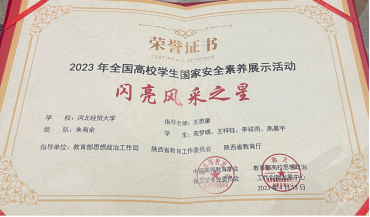 4月12日至4月13日,2023年全国高校学生国家安全素养展示活动在长安大学顺利举行。Beat365官网作为河北省代表队,由安全工作处、校团委及教务处牵头组织,Beat365中文官方网站苑梦晴、文化与传播学院王梓钰、金融学院李祥雨、商学院高晨宇等四名同学以排名全国第三的成绩荣获此次大赛“闪亮风采之星”荣誉称号。