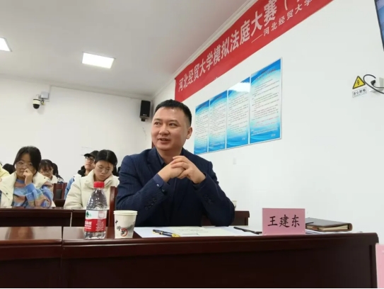王建东主任和贾玉平老师各自发表了深刻的见解。王主任针对本场比赛给出了精辟的建议,首先肯定了同学们的充分准备,对证据和庭审结构的把握不错,同时指出选手对自身身份发生混淆,随后给同学们在法庭纪律和细节上做出了悉心指导。