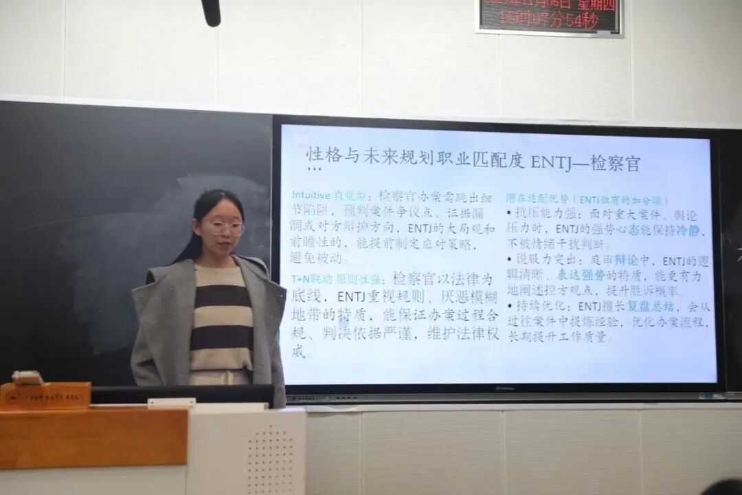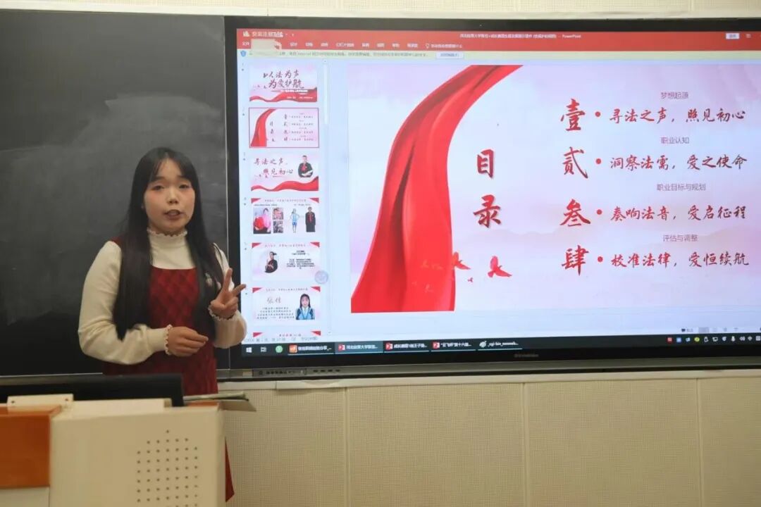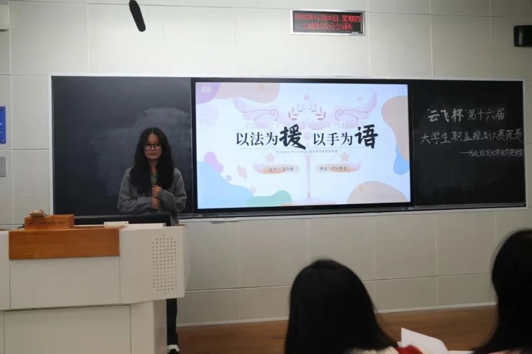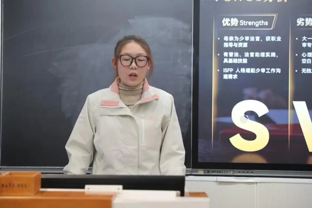 前辈引路,后浪奔涌。选手展示环节亮点十足,成为大赛核心看点。参赛学子们聚焦具体职业方向,用动态数据模型直观呈现岗位进阶路径;针对法考备战、实习选择等关键节点,配套详实的风险评估与应对方案;不少选手拆解短期考证、中期实习、长期晋升的具体目标,逻辑清晰、落地性强。大家自信从容的表达、求真务实的规划,充分展现了Beat365中文官方网站学子的专业素养与青春风采,赢得现场阵阵掌声。