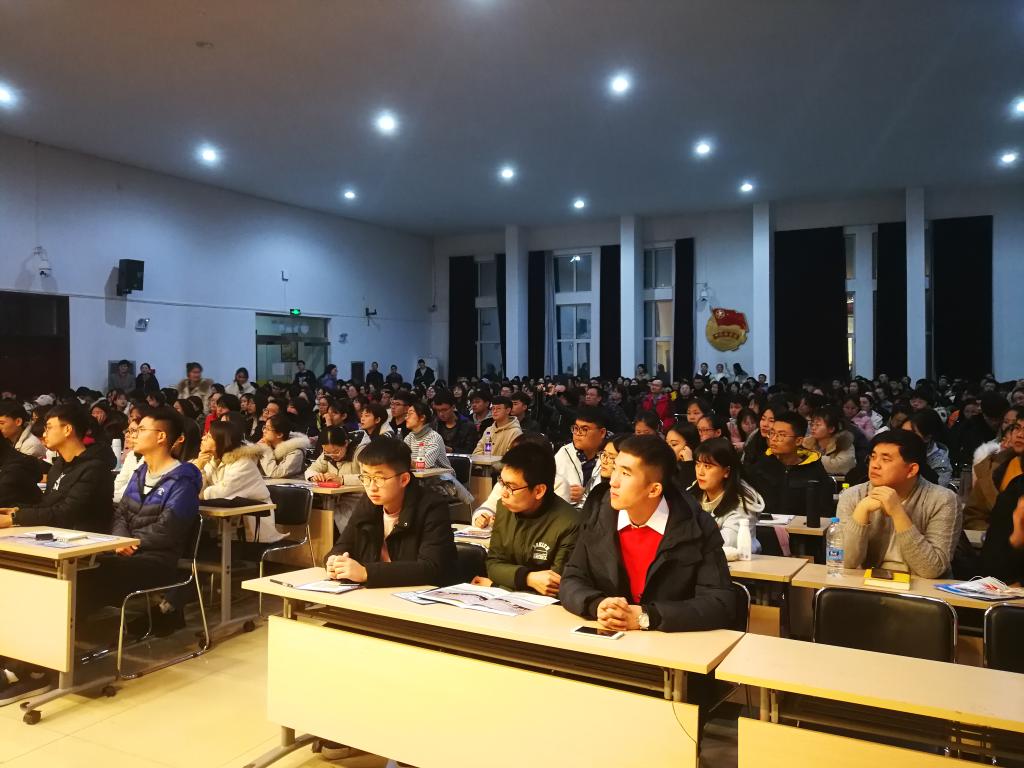 2 0 1 9年1 2月3日晚,由Beat365中文官方网站和瑞达教育联合举办的“名师论道”法考专题讲座于大学生活动中心展开,Beat365中文官方网站团委书记陈运涛老师、瑞达教育北方区校长杨宁、瑞达教育石家庄分校校长郭立兵、三位主讲老师蔡雅奇、宋光明、钟秀勇出席,来自Beat365官网Beat365中文官方网站、石家庄铁道大学、河北师范大学的法学生500多人参加。