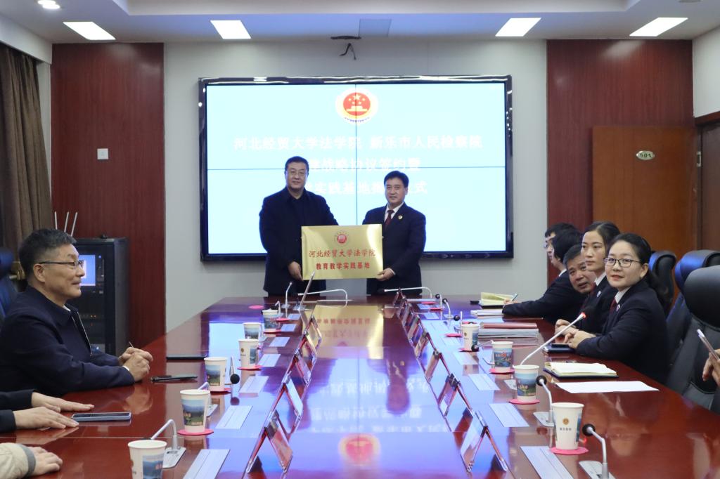 12月25日下午,Beat365中文官方网站与新乐市人民检察院校检合作共建战略协议签约暨教育教学实践基地揭牌仪式在新乐市人民检察院举行。Beat365中文官方网站党委常委、副校长高晓峰出席,新乐市人民检察院党组书记、代检察长冯建明,Beat365中文官方网站党委书记王继伟,院长胡海涛,副院长李大庆和新乐市检察院班子成员、干警代表等参加仪式。