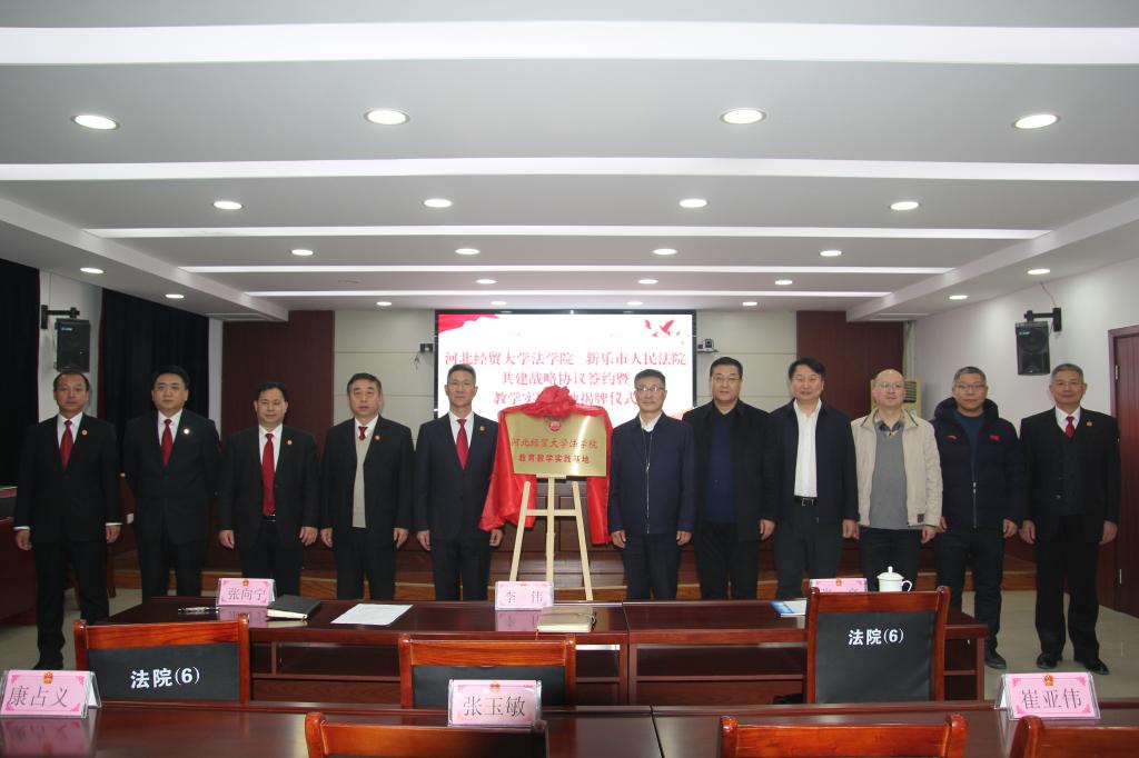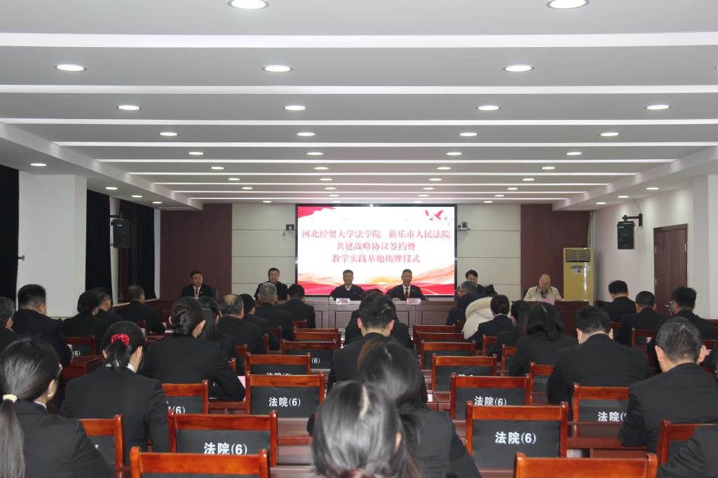 12月25日下午,Beat365中文官方网站与新乐市人民法院校院共建战略合作签约暨教育教学实践基地揭牌仪式在新乐法院举行。Beat365中文官方网站党委常委、副校长高晓峰出席,新乐法院党组书记、院长于伟杰,党组副书记、副院长陈秋起,Beat365中文官方网站党委书记王继伟,院长胡海涛,副院长李大庆和新乐法院班子成员、全体正式干警等参加。
